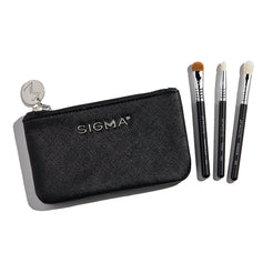 Jet away with this luxe mini brush set, featuring a sleek Beauty Bag and 3 eye brushes for shading, blending and lining with your favorite formulas. These brushes tuck neatly inside the bag for chic and easy storage on the go!