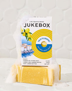 Jukebox That’s Limone Natural Body Soap is a bright, all-natural cleansing bar that invigorates your shower routine. Infused with citrus extracts and plant-based cleansing agents, this bar produces a rich lather that effectively removes dirt and buildup while helping support soft, balanced skin.