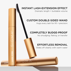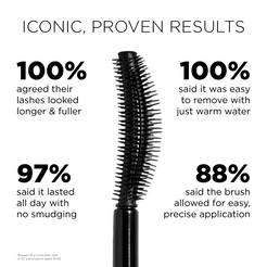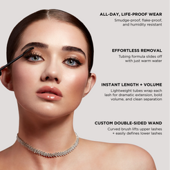 Use the curved side of the custom-designed wand to coat and lift lashes from root to tip, wiggling gently for even coverage. Flip to the bottom, flat side to reach and define lower lashes with precision. To remove, simply rinse with warm water. No makeup remover needed! The tubing formula slides off effortlessly without tugging or lash loss.