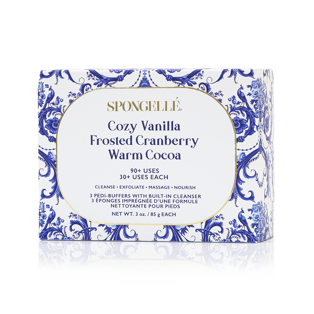 Cleanse, massage, and buff away dry, achy feet for professional pedicure results at-home. Our proprietary blend of textured polishers and moisturized cleansers work in harmony to gently exfoliate rough skin and leave your feet feeling refreshed in our signature Spongellé scent. Peppermint and sea kelp extracts enrich our Pedi Buffers to nourish and soothe tired soles.